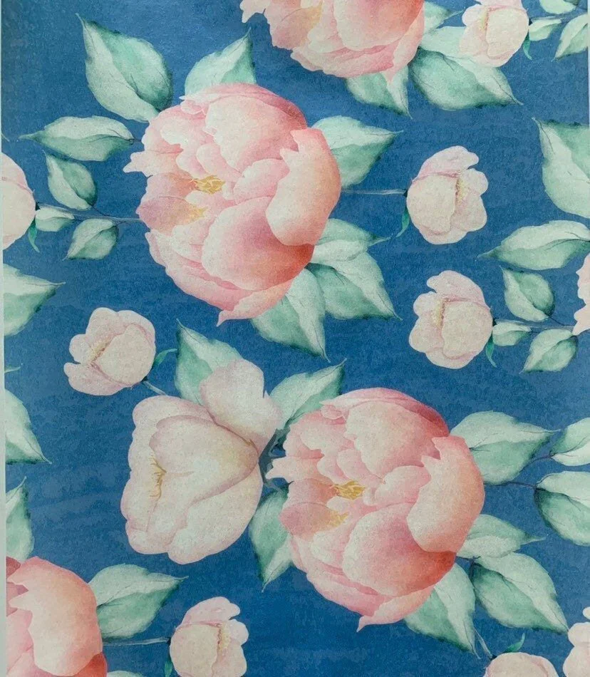Peach Florals on Blue Edible Paper