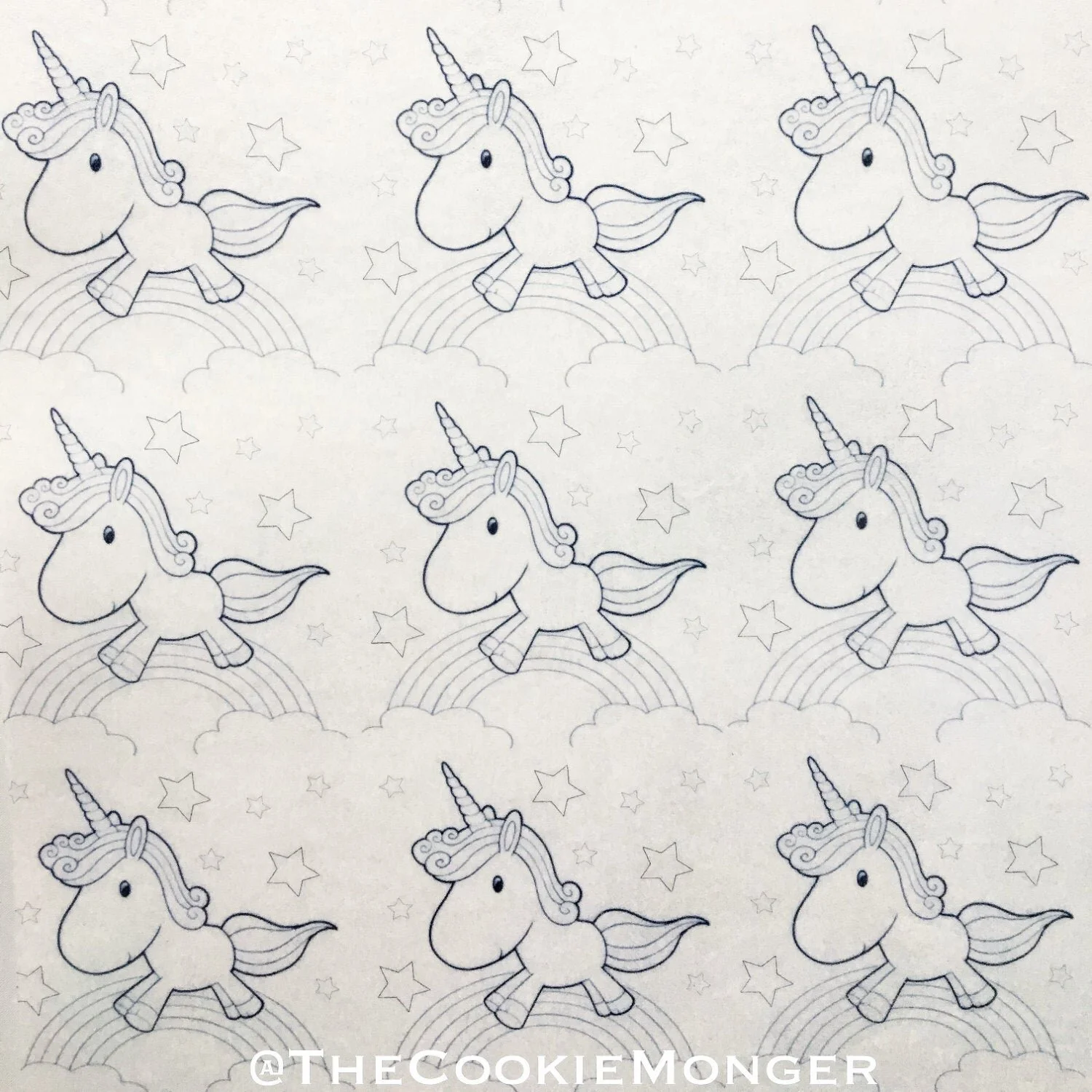 Two 8 x 11" sheets with same designs. Each unicorn pattern is approximately 2.6" x 2.6".